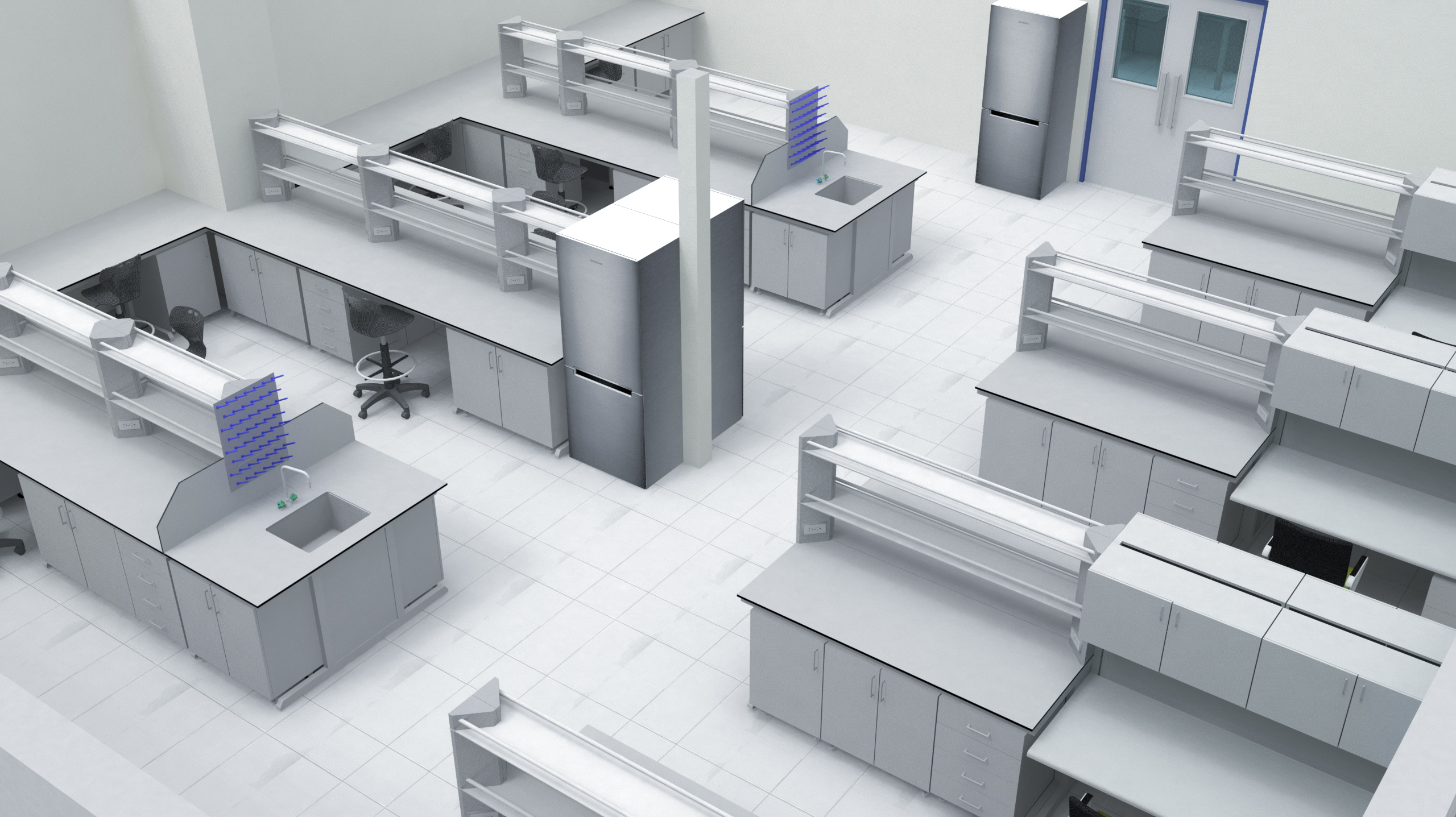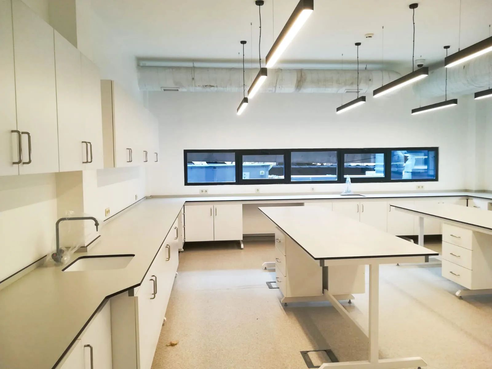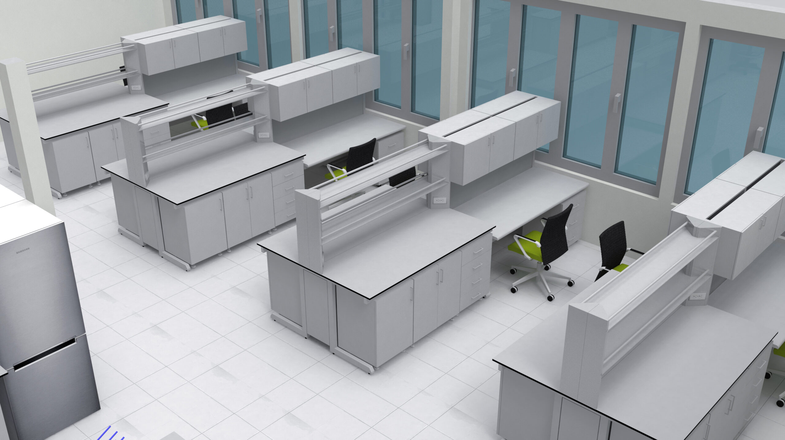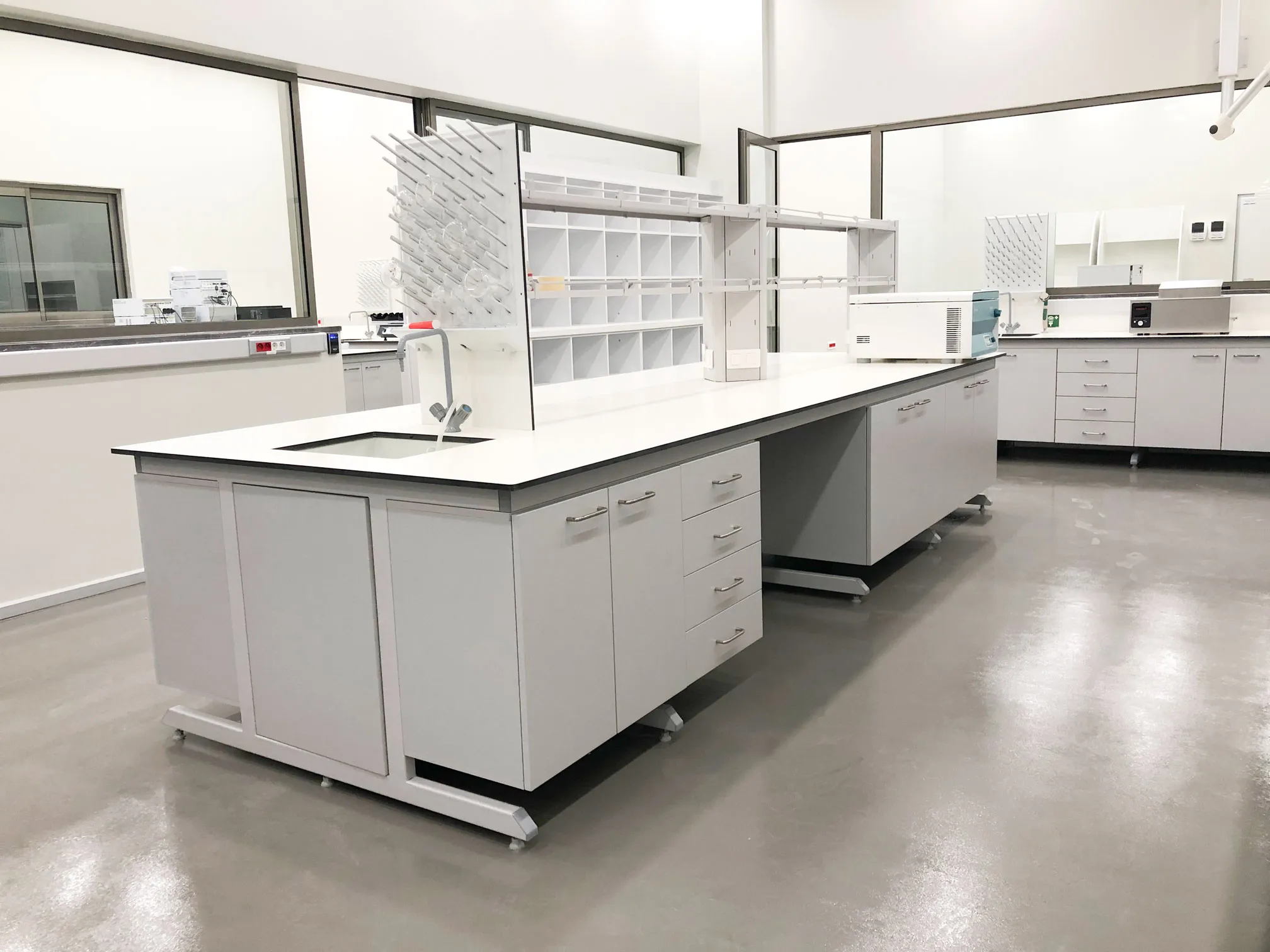 System of shelves on the laboratory bench: modifiable upon request. appropriate shelf systems for our items;