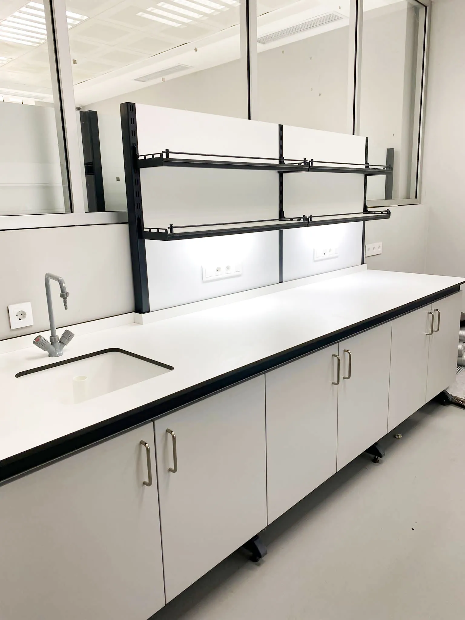 Working Surface of Laboratory Wall Bench: Modifiable upon request. application-compatible work surfaces for our products;